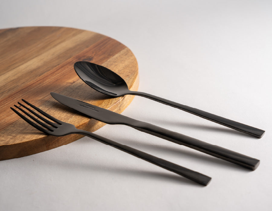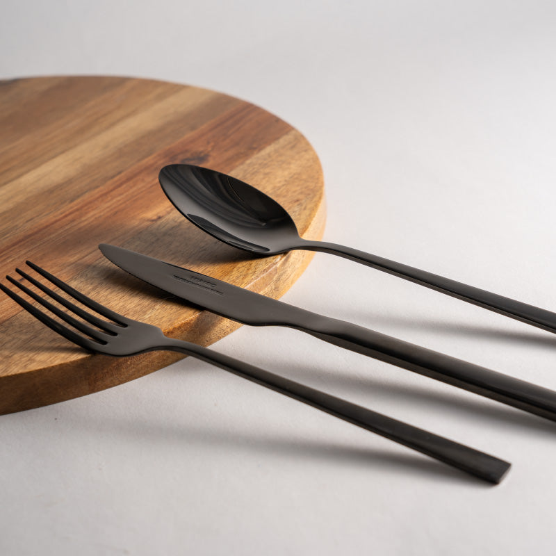 Schlanke, minimalistische Formgebung mit sanft abgerundeten Griffen, die gut in der Hand liegen. Scharfe Steakmesser und die Wahl zwischen Silber und Schwarz sorgen für einen modernen, aufgeräumten Tischlook – egal ob Alltag oder besonderer Anlass.