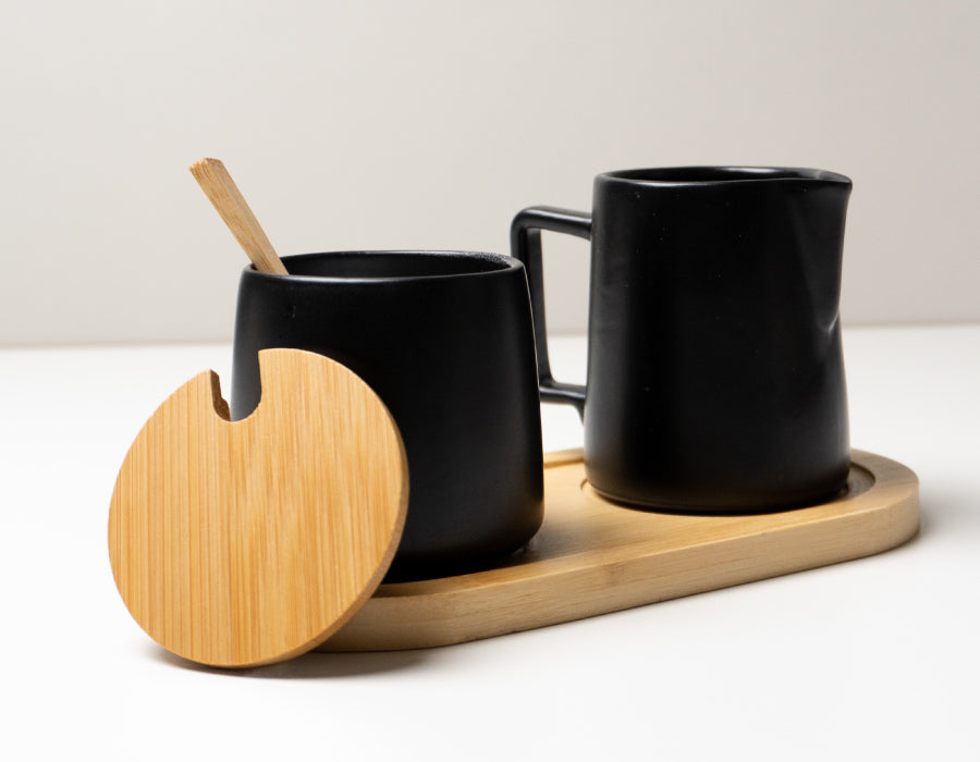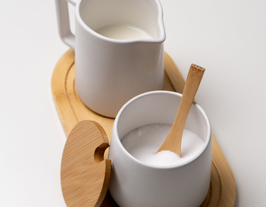 Milch und Zucker Set mit Deckel, Löffel & Milchkännchen